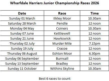 Alongside the junior champs we run a Mum’s and Dads championship which is based on the same set of races as the juniors. In order to gain points you must have a child that runs the junior race to qualify for points on that day. As long as your child runs for Wharfedale Harriers, it doesn’t matter if the parent is a club member or not. There will then be a trophy for the Mum and the Dad who gain the most points at the end of the year.